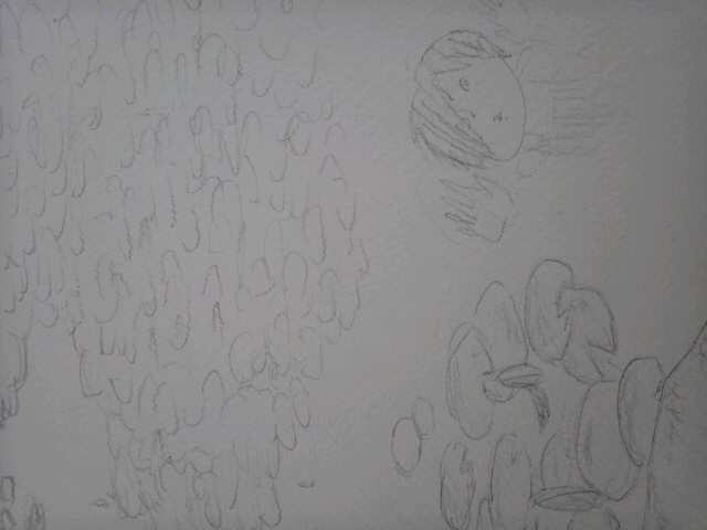 昨日の続きで蓮の葉とか描いてた